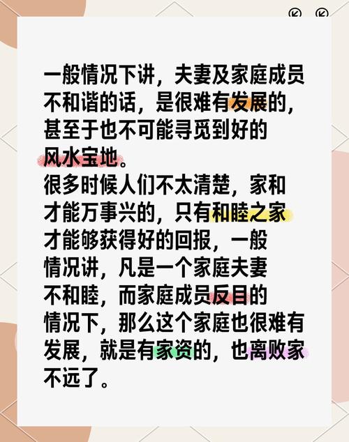 環(huán)境氣場的影響:風水學認為,家居環(huán)境中的氣場對人的情緒和心理狀態(tài)有著直接的影響。一個和諧、舒適的居住環(huán)境能夠增進夫妻間的感情,而不利的環(huán)境則可能導致矛盾和爭吵。