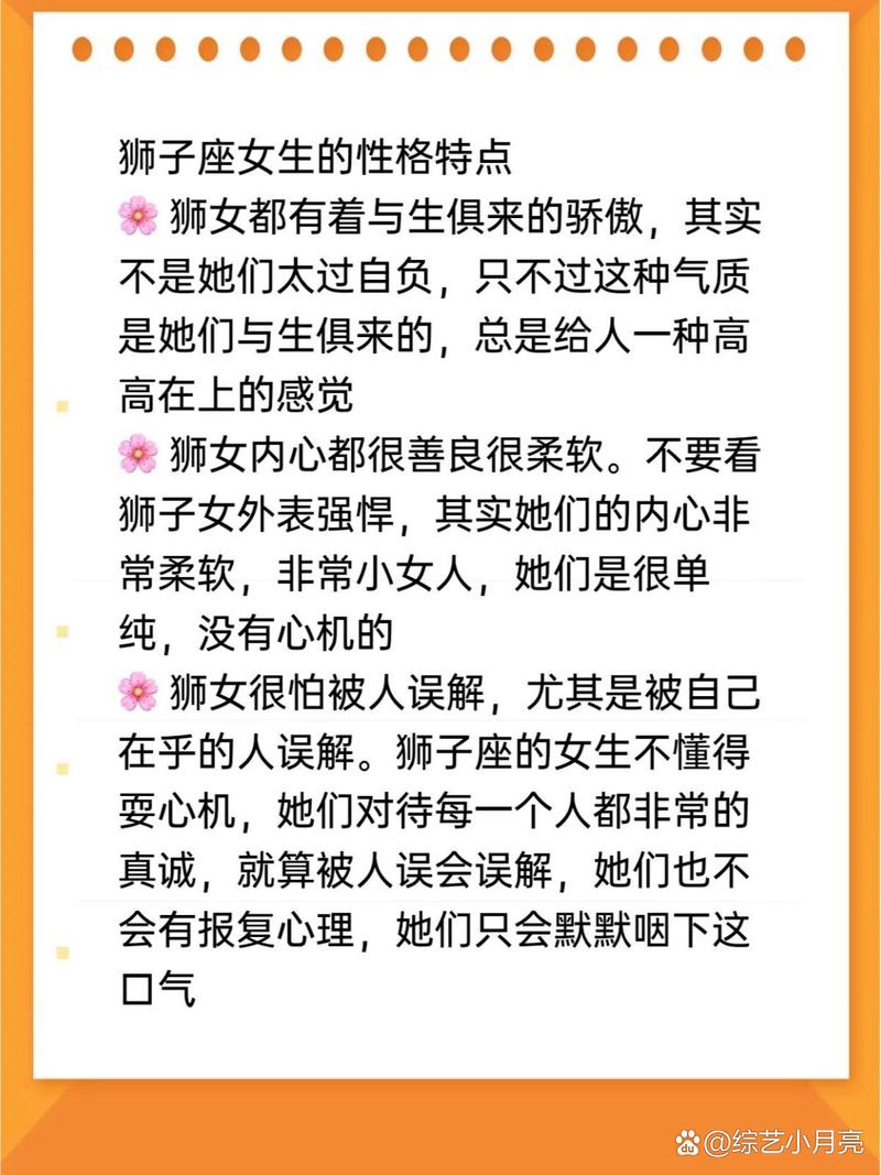 愛面子:獅子座女生非常注重自己的形象和面子,希望自己在他人眼中始終保持完美。她們喜歡被人關注和贊美,渴望得到他人的認可和贊賞。