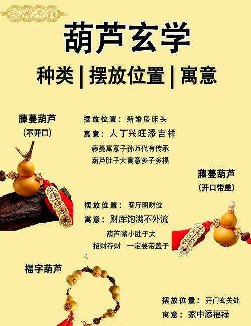 3. 注意事項:避免將葫蘆擺放在橫梁下方或正對廁所,以免影響運勢。保持葫蘆的清潔和完好,以確保其風水作用得以發(fā)揮。