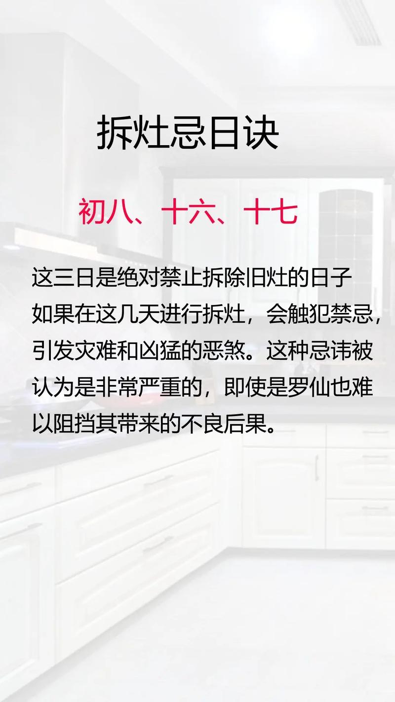 拆除灶臺(tái)并非尋常小事,在傳統(tǒng)文化中,灶神掌管家庭飲食錢(qián)糧,因此選擇黃道吉日拆灶尤為重要。以下為您詳解: