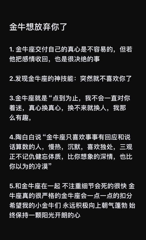 金牛座的人,雖然不善于表達情感,但他們的愛卻非常持久。他們不會輕易愛上一個人,但一旦愛上,就會全心全意地去愛,絕不會輕易放棄。金牛座的愛,就像陳釀的酒,隨著時間的流逝,變得越來越醇香。
