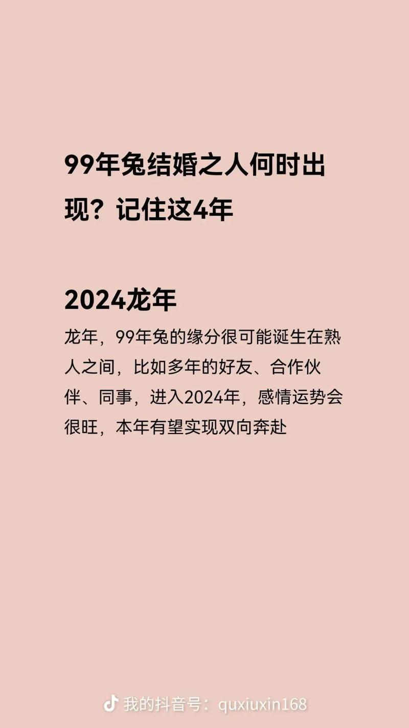 少部分三次婚姻:也有少部分99年屬兔女可能會經(jīng)歷三次婚姻,這通常是因為她們在感情上較為復雜,缺乏安全感,容易貪戀新鮮感。