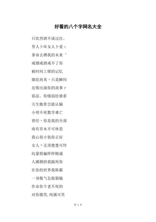 在浩瀚的網(wǎng)絡(luò)世界里,一個(gè)精心設(shè)計(jì)的網(wǎng)名如同你的第二張名片,能夠展現(xiàn)你的個(gè)性,吸引志同道合的朋友。而將姓名融入網(wǎng)名,更是一種獨(dú)特的自我表達(dá)方式。本文將聚焦于“姓名配對(duì)網(wǎng)名8字大全”,旨在提供一系列創(chuàng)意靈感,助你打造專屬的網(wǎng)絡(luò)身份。