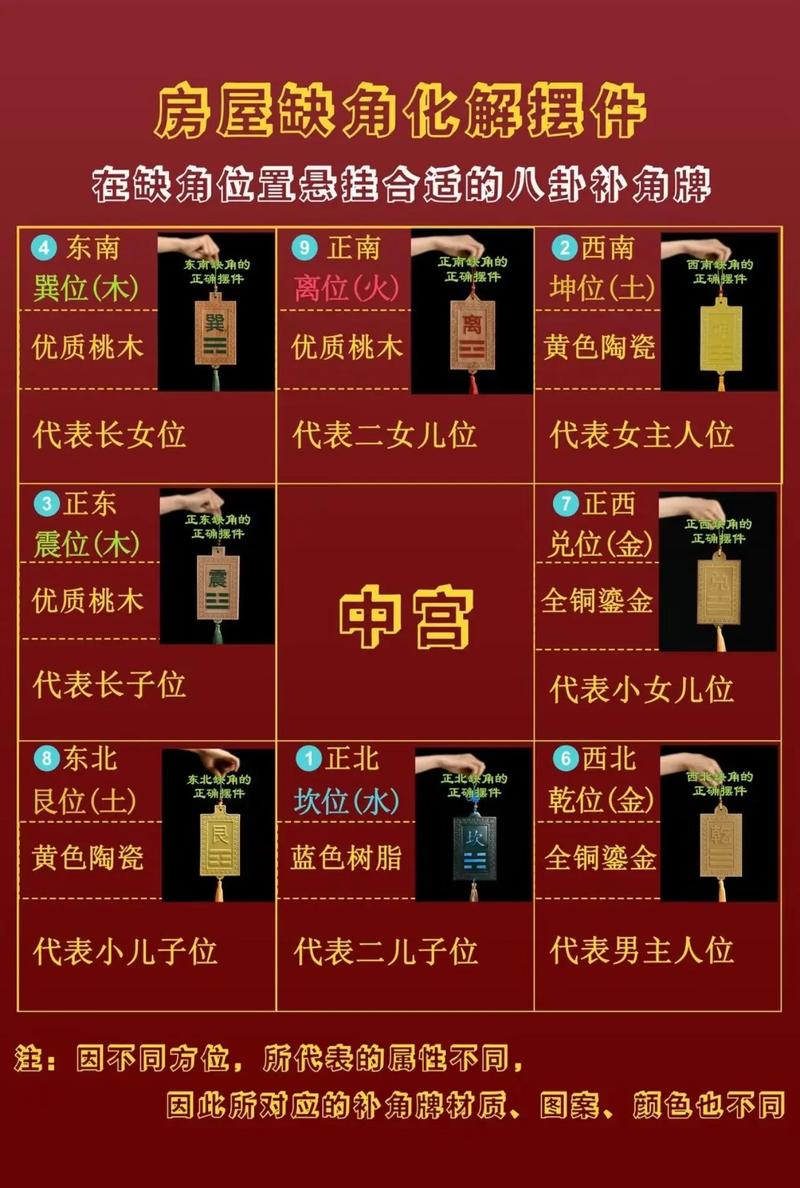 5. 生肖擺件:根據(jù)缺角的方位,可以擺放相應(yīng)的生肖擺件來(lái)化解。例如,北方缺角可以擺放鼠和豬的吉祥物,東方缺角可以擺放虎和兔的吉祥物,南方缺角可以擺放蛇和馬的吉祥物,西方缺角可以擺放猴和雞的吉祥物,西南方缺角可以擺放羊的吉祥物,西北方缺角可以擺放狗的吉祥物。