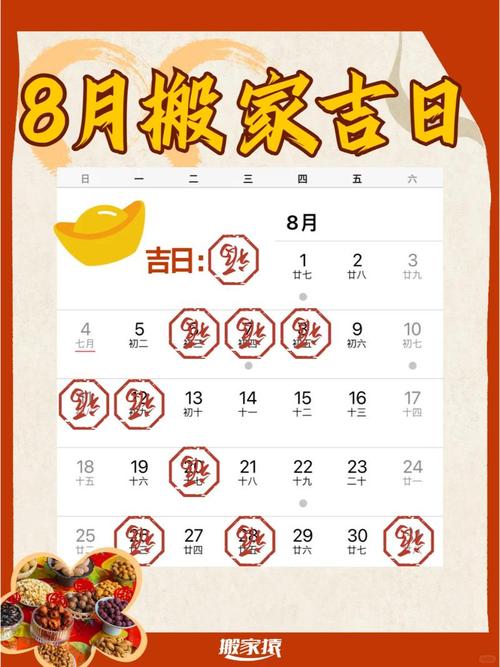 八月是暑氣漸消,秋高氣爽的時(shí)節(jié),也是搬家旺季。這個(gè)月有許多適合搬家的黃道吉日,例如: