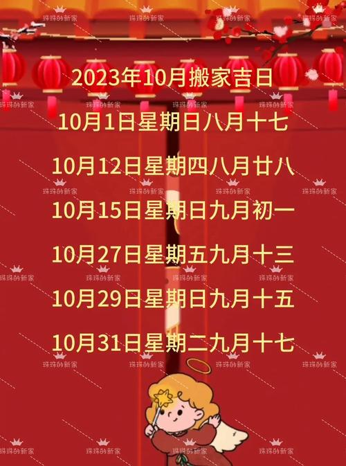 2023年10月適合入宅的黃道吉日有以下幾天: