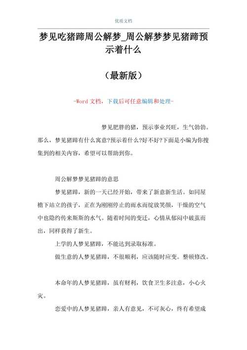在周公解夢(mèng)中,啃豬腳往往被解讀為吉祥的預(yù)兆,代表著以下幾方面的含義: