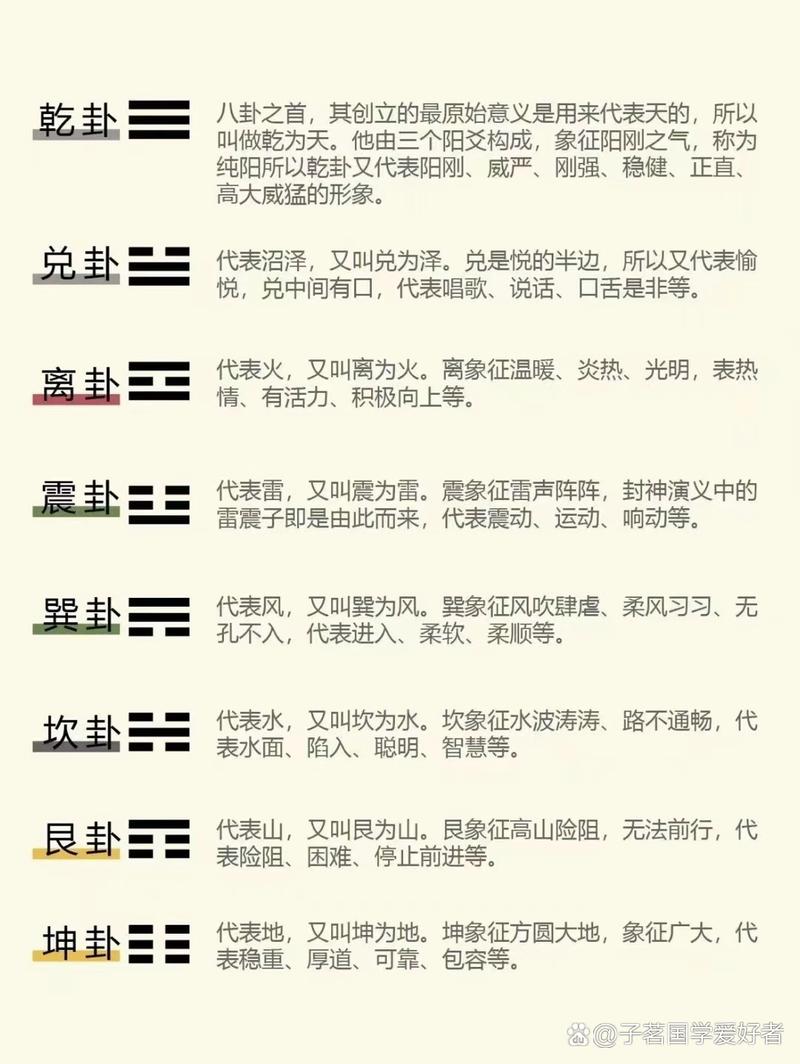 八卦的組成:八卦由乾、坤、震、巽、坎、離、艮、兌八個(gè)基本卦象組成,每個(gè)卦象代表自然界的不同狀態(tài)和力量。
