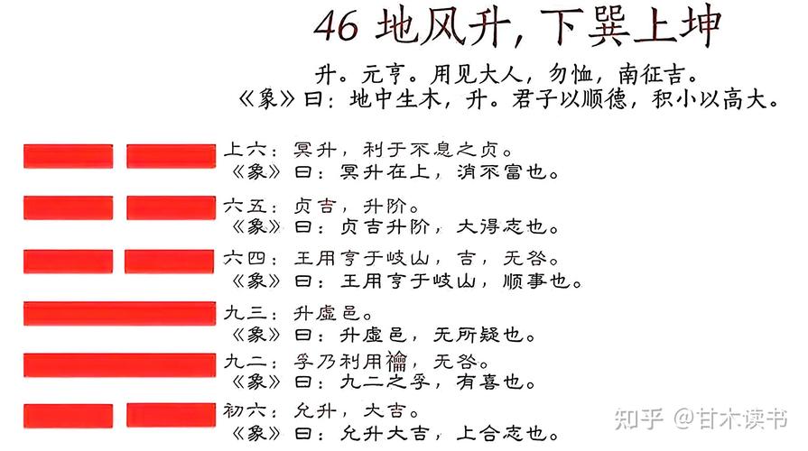 升,本義是太陽(yáng)從地平線(xiàn)上升起,引申為進(jìn)升、提升、提高等。在《周易》中,升卦是第42卦,象征著進(jìn)升、提升、提高。升卦的卦形是乾上坤下,乾為陽(yáng),坤為陰,陽(yáng)升陰降,萬(wàn)物生長(zhǎng),形勢(shì)一片大好。