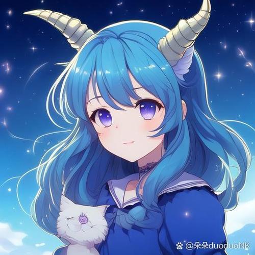 頭像女漫畫藍色摩羯座黑白 微信頭像藍色
