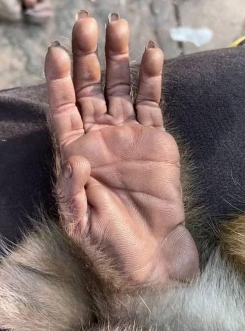 黑猩猩的手相結(jié)構(gòu)復(fù)雜,擁有長而靈活的手指和強壯的拇指,使其能夠高效地抓取和攀爬。相較于人類,黑猩猩的手掌更寬,指節(jié)位置更低,這種設(shè)計使它們在樹木間的移動更加靈活。這一結(jié)構(gòu)不僅滿足了其日常覓食的需要,也為它們在環(huán)境中保持競爭優(yōu)勢提供了支持。
