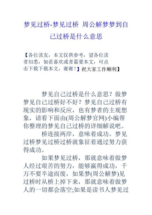 在夢境解析中,周公解夢認(rèn)為推車過橋代表著以下寓意: