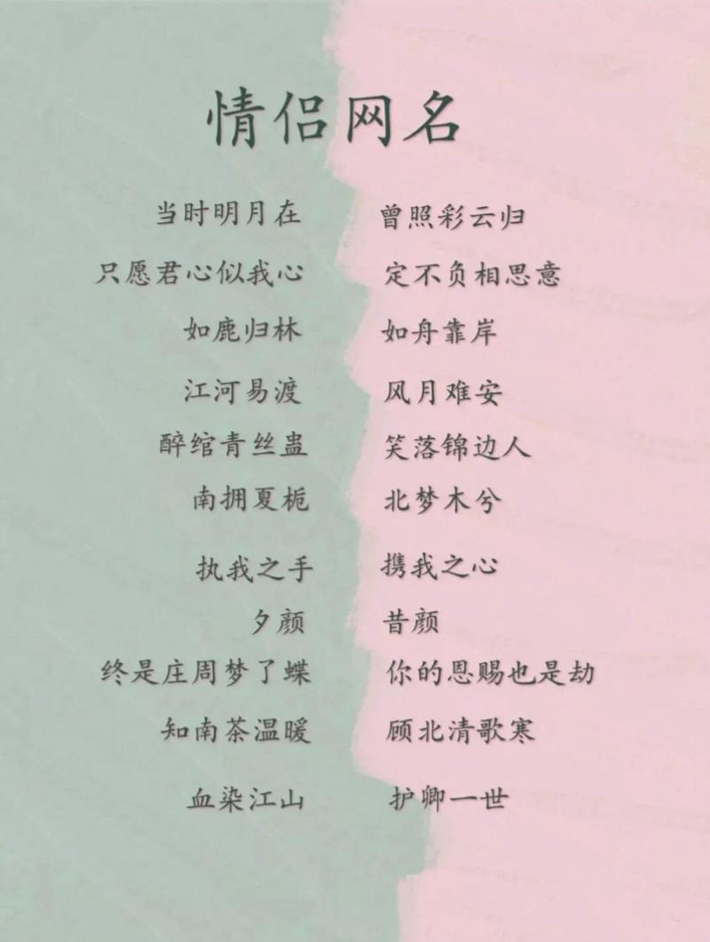 情侶網(wǎng)名字配對古風(fēng) 情侶古風(fēng)