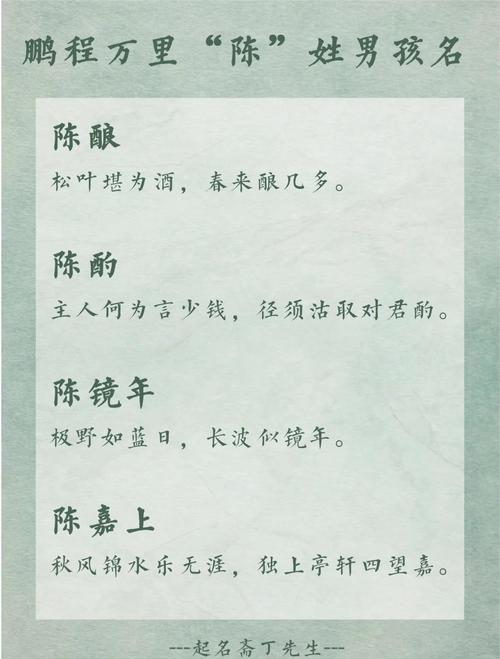 “陳”,作為大姓,具有一定的普遍性,象征著傳承、根基。它指向的是家族背景、祖輩積淀,某種程度上預示著個體在社會環(huán)境中更容易獲得一定的初始資源與支持。姓氏的普遍性也意味著需要通過后天的努力,才能在人群中脫穎而出,建立屬于自己的獨特價值。