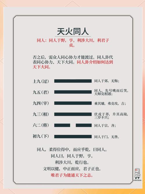 同人卦的吉兇變化多端,影響因素復(fù)雜。因此,想要準(zhǔn)確判斷同人卦的吉兇,需要結(jié)合卦主的具體情況,具體問題具體分析。