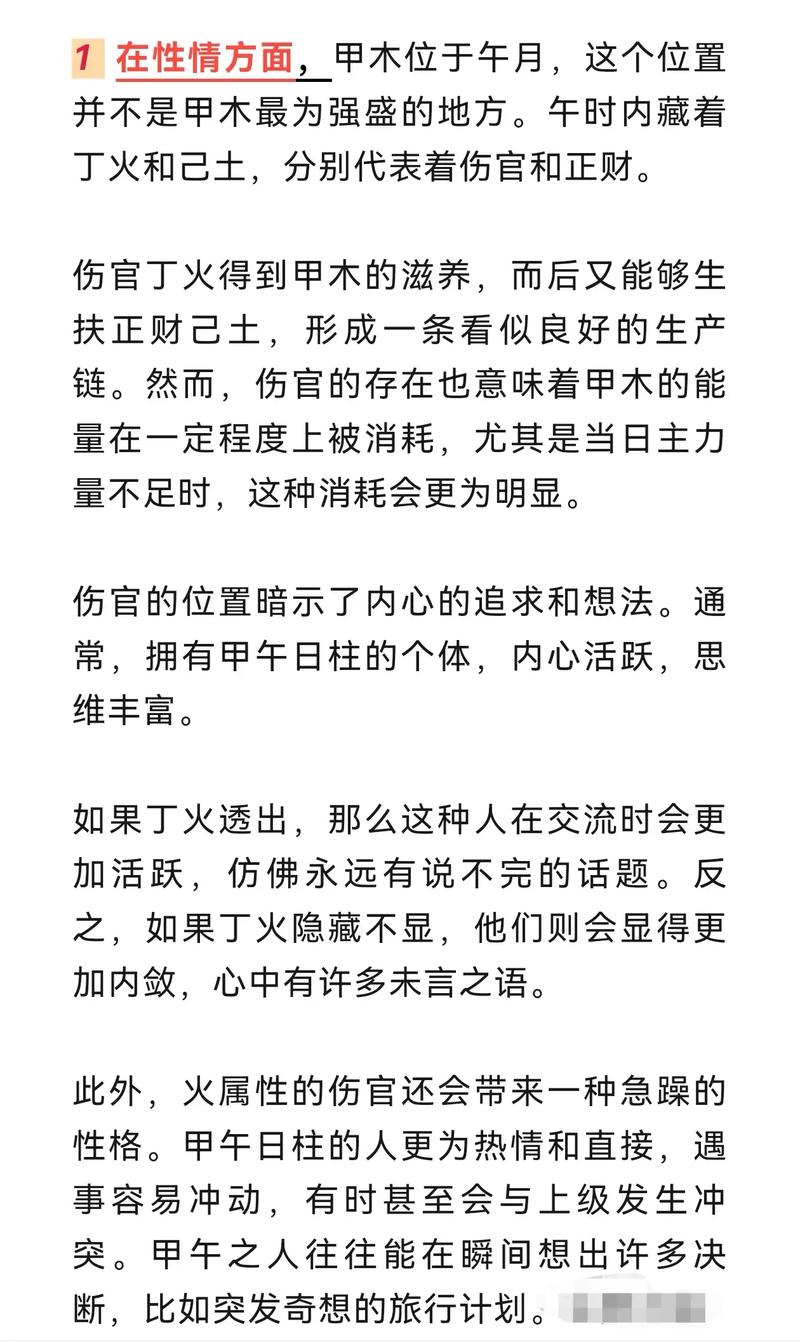 甲午日柱的人通常性格直率,坦誠活潑,但有時(shí)可能顯得過于固執(zhí)和缺乏耐心。這種直率的性格雖然能夠贏得他人的信任,但也可能在溝通中遇到障礙,需要學(xué)會委婉表達(dá)自己的意見。