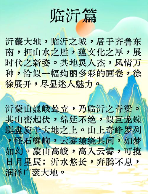 臨沂地處魯中南丘陵地帶,沂蒙山脈環(huán)繞其間,形成了天然的屏障。而沂河和沭河兩條大河縱貫全境,為臨沂帶來(lái)了源源不斷的生機(jī)和活力。正是這種得天獨(dú)厚的地理環(huán)境,使得臨沂成為了一塊風(fēng)水寶地,孕育了眾多杰出人才。