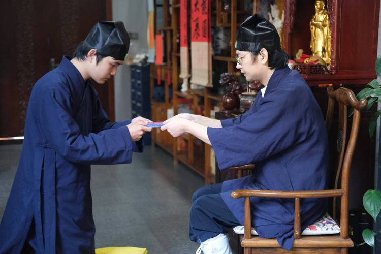10. 拜師儀式:收徒儀式通常包括焚香奏表、誦經(jīng)禮懺等程序,弟子需宣讀拜師帖子表明決心,師父也會讓弟子起誓、跪拜三清道祖和歷代宗親,以表達對道教的敬仰和感恩。