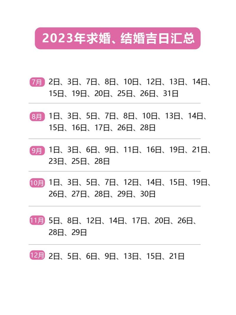 以上只是 2023 年一些最佳結(jié)婚吉日,您也可以根據(jù)自己的喜好和需求來選擇一個合適的日子。