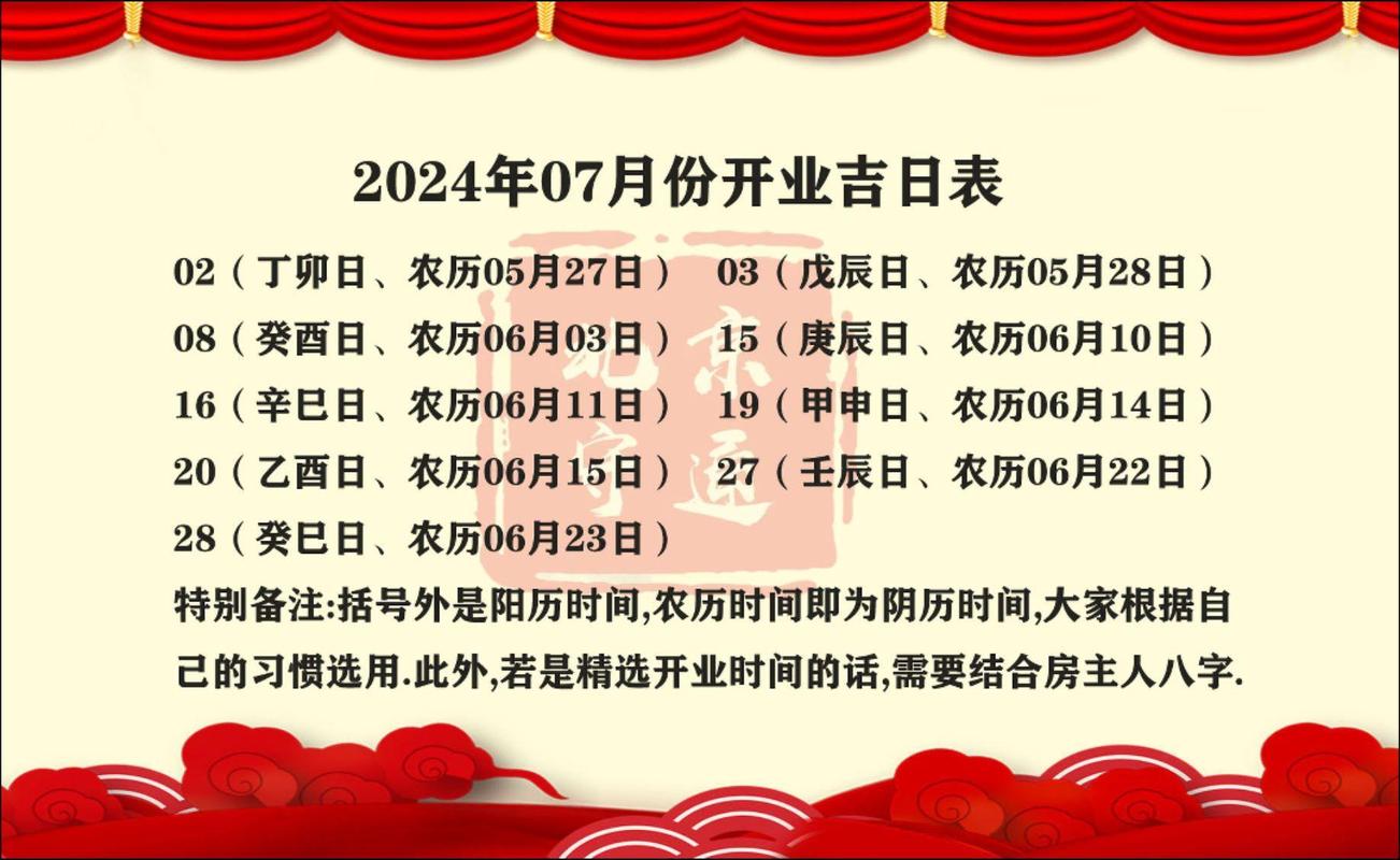 選擇合適的開業(yè)吉日是許多公司在開業(yè)前會(huì)考慮的重要事項(xiàng)。它不僅關(guān)系到開業(yè)當(dāng)天的順利與否,還可能對(duì)店鋪的長(zhǎng)期發(fā)展產(chǎn)生深遠(yuǎn)影響。以下是關(guān)于2024年7月適合開業(yè)的黃道吉日的詳細(xì)信息。