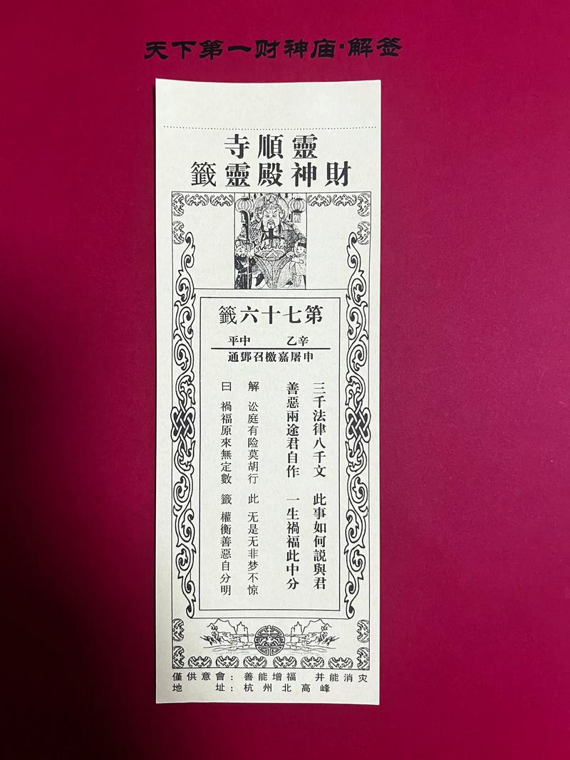 靈簽簽七十六,上上簽。此簽預示著求簽之人初心不改,終得福祿。貴人相助,一帆風順。心懷感恩,不忘初心。提防小人,小心為上。謀事在人,成事在天。求簽之人若能謹記此簽之言,必能福澤深厚,子孫興旺。