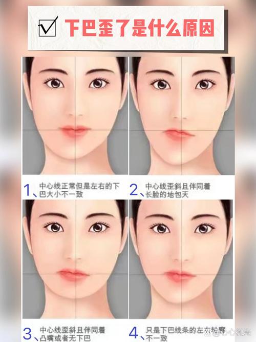 肌肉不對稱:下巴歪斜導致面部肌肉分布不均,可能出現(xiàn)肌肉不對稱的情況。