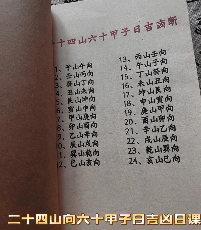 廿四山:指的是風(fēng)水學(xué)中的二十四個(gè)方位,每個(gè)方位都與特定的山相對應(yīng)。