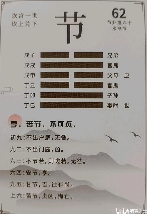 節(jié)卦是《易經(jīng)》中的第六十卦,象征著節(jié)制和限制。通過占筮節(jié)卦,可以了解在不同階段的吉兇情況。以下是對節(jié)卦六爻占筮吉兇的詳細解析。