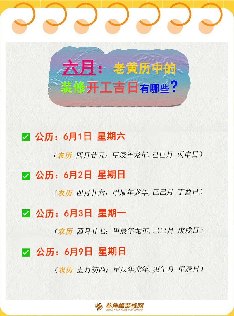 以下是2025年6月適合裝修的黃道吉日: