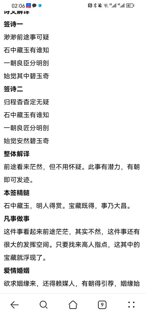 4. 解簽:根據(jù)簽號查找對應(yīng)的簽文解釋,理解簽文的寓意。簽文通常包括詩句和解釋,幫助你了解當(dāng)前的情況和未來的指引。