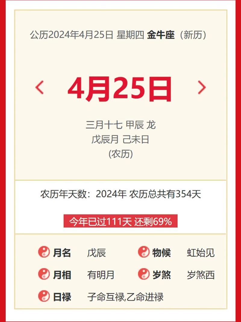 2. 農(nóng)歷四月初十,陽歷2025年5月7日