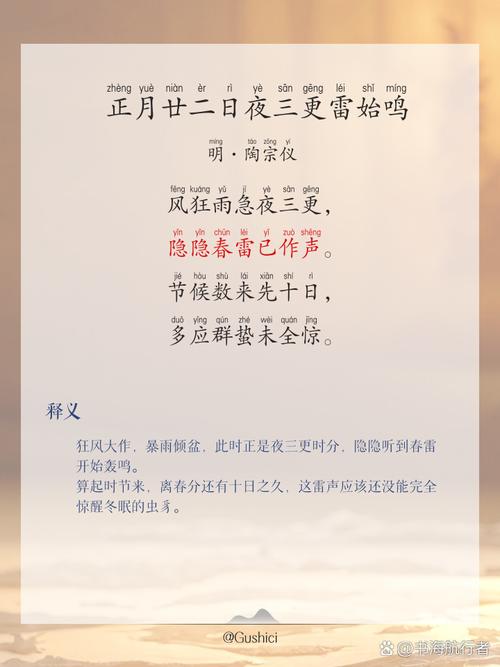 社會變革的號角:在社會層面,春雷象征著變革與更新,激勵人們打破傳統(tǒng),追求創(chuàng)新。