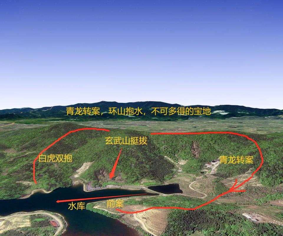 青龍轉(zhuǎn)案是指青龍方的山脈延伸并轉(zhuǎn)向形成案山,案山是穴山前方像桌子一樣的山丘或建筑。