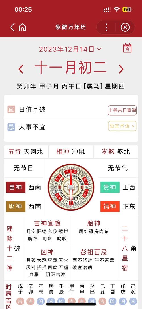 紫微萬年歷是一種結(jié)合了紫微斗數(shù)和五行學(xué)說的傳統(tǒng)日歷工具,用于查詢黃道吉日。它不僅提供了每日的吉兇宜忌信息,還能根據(jù)用戶的生辰八字提供個性化的運勢分析。以下是關(guān)于紫微萬年歷查詢黃道吉日的詳細(xì)信息。