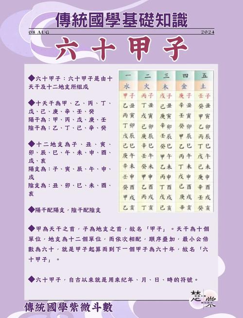 六十甲子中的每個(gè)天干和地支都對(duì)應(yīng)一個(gè)五行屬性(木、火、土、金、水),這些屬性相互作用,影響個(gè)人的命運(yùn)和性格。通過(guò)了解六十甲子的五行屬性,可以更好地理解個(gè)人命盤(pán)中五行的平衡與沖突,從而進(jìn)行更有效的命理學(xué)分析。