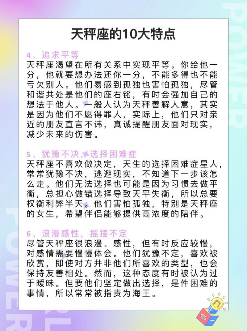 天秤座在決策時的猶豫不決可能會影響他們的工作效率和生活質(zhì)量。這種性格也體現(xiàn)了他們對決策的謹(jǐn)慎態(tài)度。通過學(xué)習(xí)和實踐,天秤座可以學(xué)會在追求平衡的也要勇于做出決策。這種平衡和果斷的結(jié)合將使他們在生活和工作中更加成功。