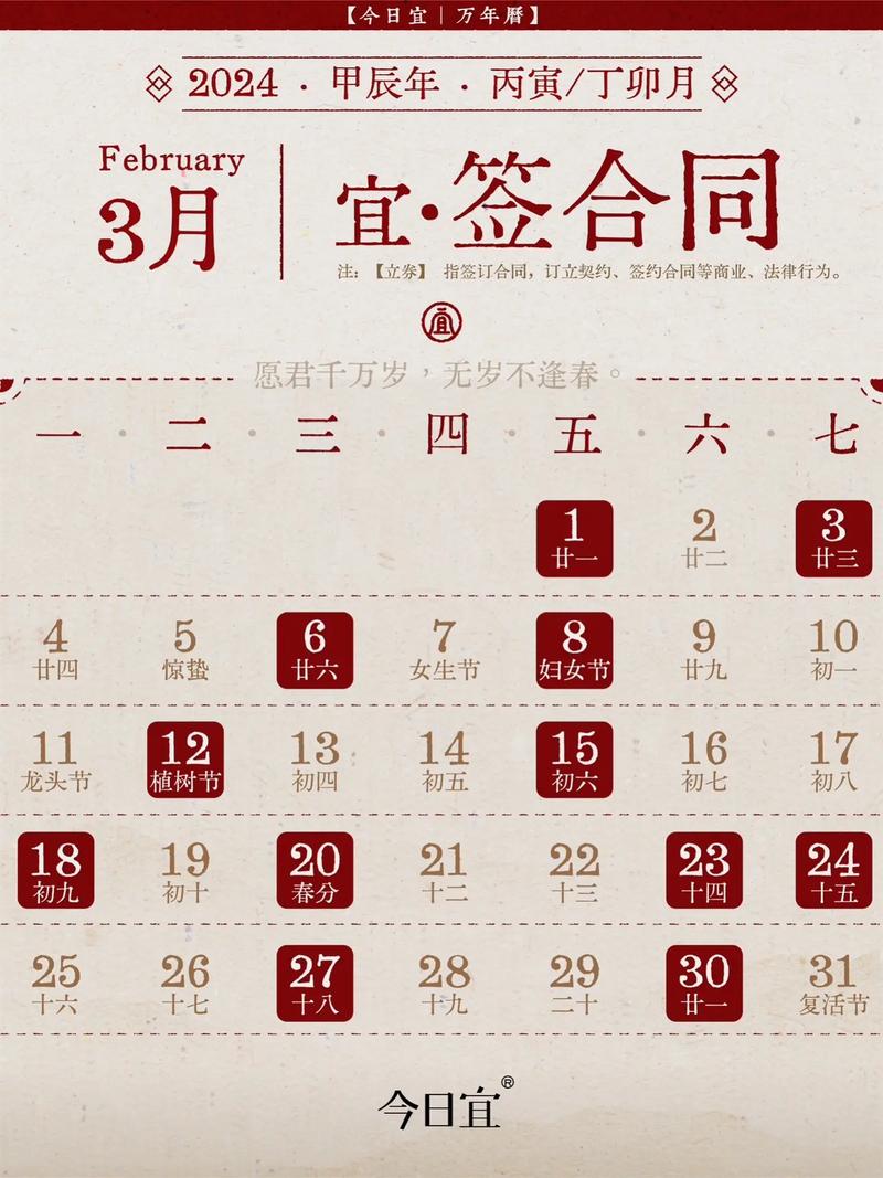 2024年3月3日是農(nóng)歷正月廿三,星期日。這一天宜開光、解除、伐木、豎柱、上梁、交易、買車、提車等。這一天也適合提車,因為它在黃歷上標注為吉日,適合進行交易和重要的活動。