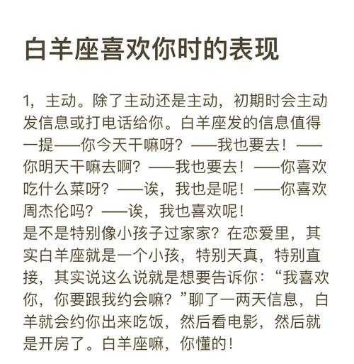 白羊座的人在愛(ài)情中以其直接、熱情和冒險(xiǎn)精神著稱(chēng)。他們的愛(ài)情表達(dá)方式多種多樣,既有直接的言語(yǔ)和行動(dòng),也有對(duì)新鮮感和刺激的追求。以下是白羊座在愛(ài)情中的一些主要表現(xiàn)方式。