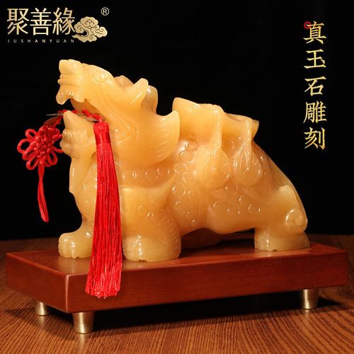 擺件:黃玉貔貅擺件造型栩栩如生,有單色和多色拼接,如黃色與白色、黃色與綠色等,寓意豐富。