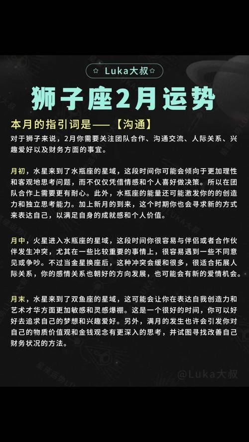 2025年2月,獅子座的工作運(yùn)勢(shì)呈現(xiàn)出積極向上的趨勢(shì)。以下是對(duì)獅子座在這個(gè)月的工作運(yùn)勢(shì)的詳細(xì)分析和建議: