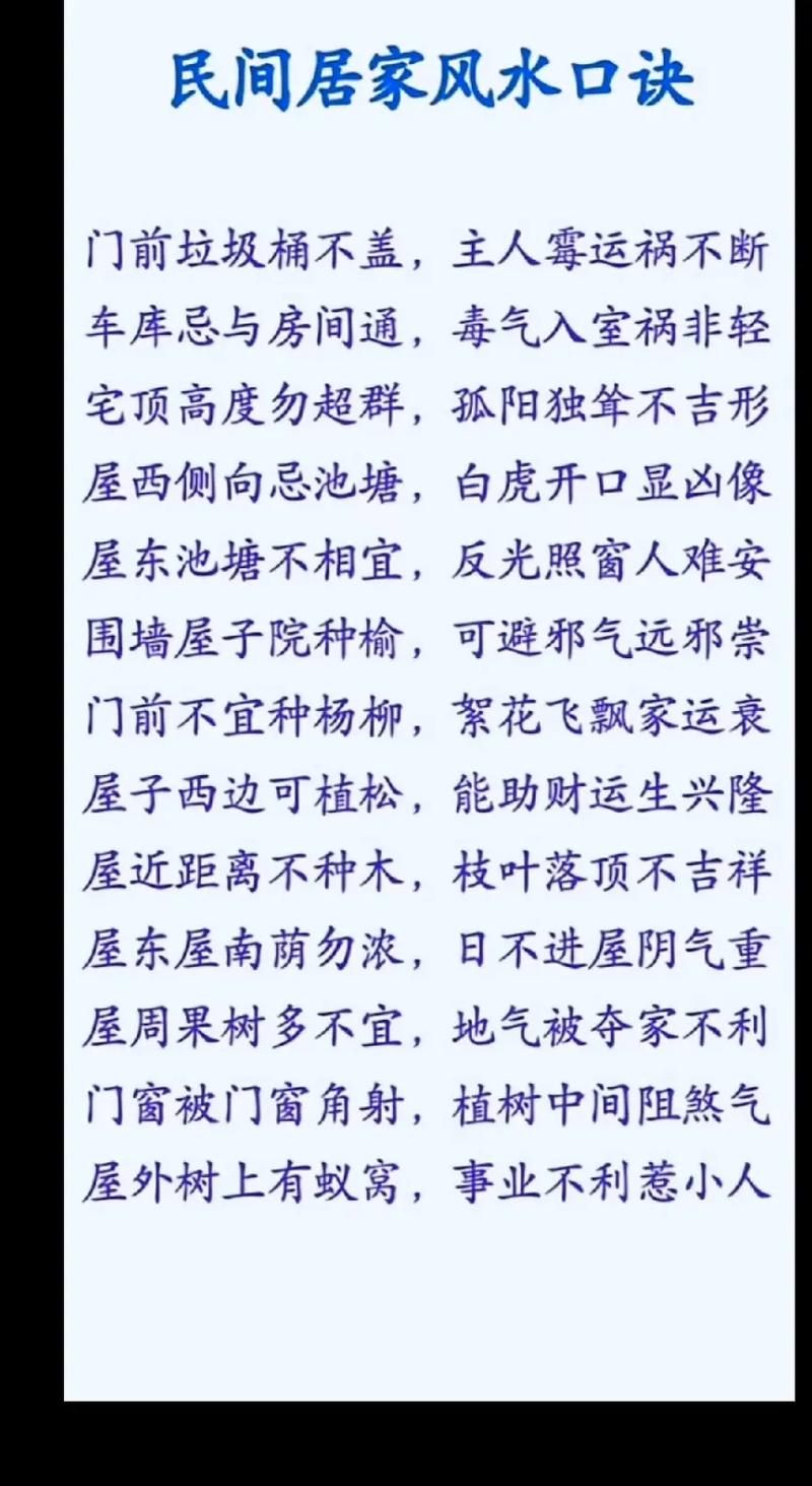 農(nóng)村風(fēng)水陰宅順口溜是民間流傳的一種風(fēng)水口訣,通常用于描述和解釋陰宅風(fēng)水的一些基本原則和現(xiàn)象。這些口訣簡潔明了,易于記憶,是風(fēng)水學(xué)中重要的輔助工具。