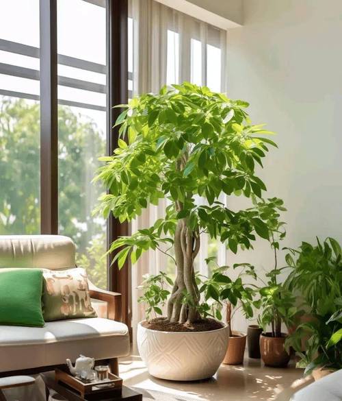 1. 發(fā)財樹:寓意財源廣進(jìn),葉片四季常綠,具有空氣凈化能力。